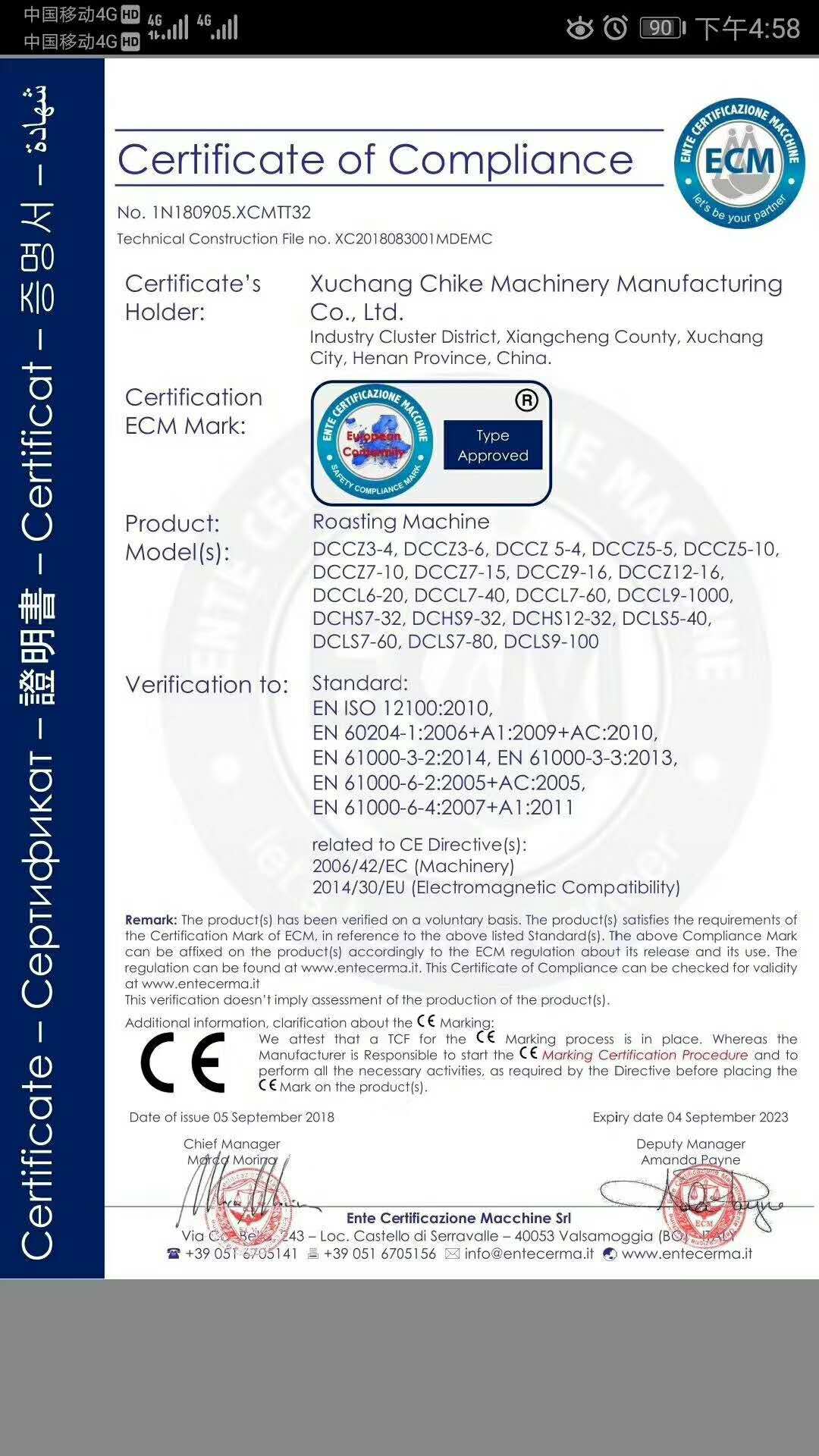 許昌智工產(chǎn)品已經(jīng)通過歐盟CE認(rèn)證,所有產(chǎn)品已經(jīng)通過安全,衛(wèi)生,環(huán)保和消費者保護等一系列歐盟標(biāo)準(zhǔn)要求。