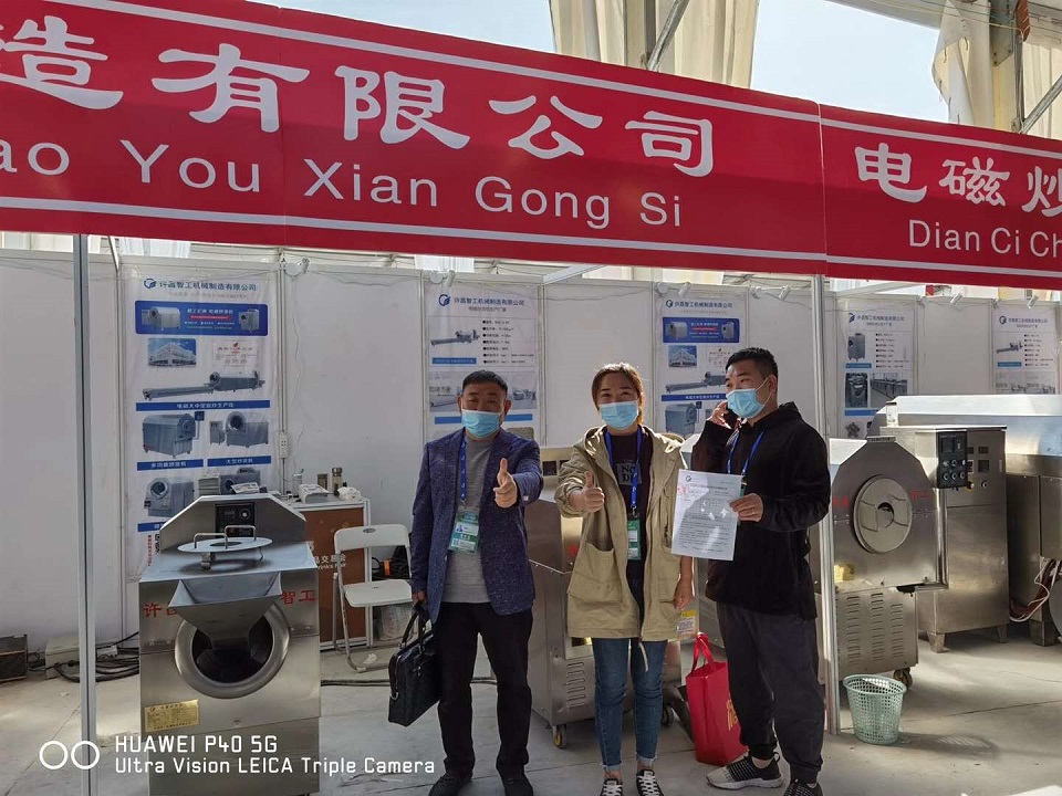 2020年10月13日,山東濟(jì)南第103屆全國糖酒會(huì)第一天,客戶簽訂合同訂購一臺(tái)DCCZ 9-16型電磁炒貨機(jī)。